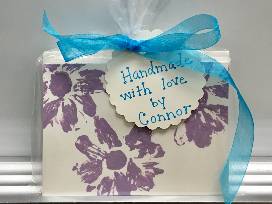 9Each of Mrs. Hackett and class have created their own set of flower print notecards for purchase. Children dipped fresh daisies in paint and gently pressed onto notecards to create a personalized notecard that's almost too darling to use. These would make an excellent grandparent gift! Cards will be sent home with children of parents who have purchased.