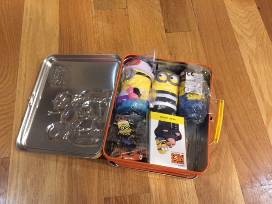 Despicable Me 3 Lunchbox with blow up beach ball, pairs cards, 3 key chains, and 3 squishy minions.