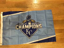 An autographed Alcides Escobar World Series Bat, a Raised Royal blanket, a Raised Royal flag, a World Series Flag and an autographed Eric Hosmer baseball.