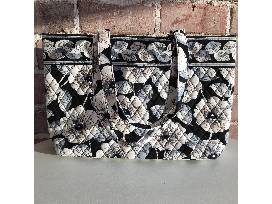 A Vera Bradley Weekender East West tote with Vera Bradley watercolor pen and pencil set and two packages of Vera Bradley binder clips.
