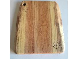 Beautiful rich tones in a handmade cutting board. Made with a solid piece of Honey Locust with 2 live edges. This board is designed to be grabbed quickly and can be easily hung for storage. It is easy to handle for every-day use. Dimensions: 12" wide x 16" tall x 1'' thick. Finished with mineral oil.