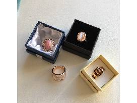Four gold and rose rings all in size 7.