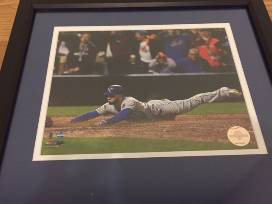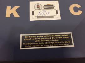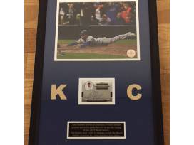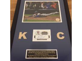 A framed and matted Eric Hosmer signed photo of Hosmer's infield hit that caused the Royals to tie in the 2015 World Series.