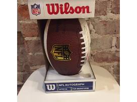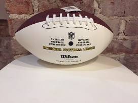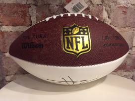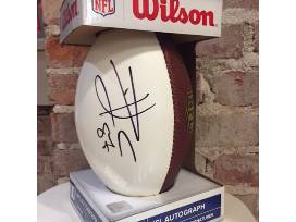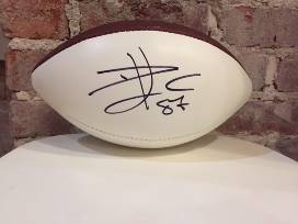 A signed Travis Kelce football. Travis Kelce is the tight end for the Kansas City Chiefs.