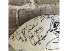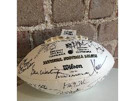 An exclusive football signed by over 20 different NFL Hall-of-famers at a NFL Broadcast Camp. Among some of the signatures are, Rod Martin who played for the Raiders, Ted Kwalick who played for the Raiders and 49ers and Mike Davis who played for the Raiders.