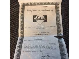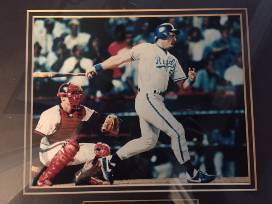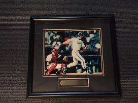 A framed and matted photo of the KC Royals Hall-of-Famer, George Brett. The picture is autographed however the ink has faded over time.