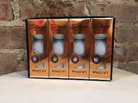 Four sleeves of Titelist Pro V1 golf balls containing three golf balls each.