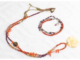 Gorgeous Sundance Inspired Necklace and Bracelet. Necklace is approximately 34" long, bracelet is about 6 1/2 ". Made of mixed semiprecious gemstones.