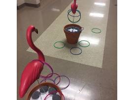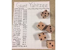 Enjoy backyard fun with these larger than life games designed/personalized by our 7th graders. The set includes: Yahtzee, Flamingo Ring Toss, and Tree Cookie Tic Tac Toe. Donated by 7th grade.