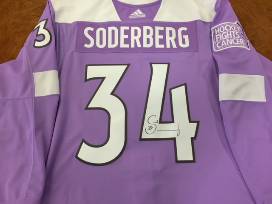 Carl Soderberg lavender jersey worn during pre-game on November 2, 2017 in honor of Hockey Fights Cancer. Jersey will be autographed by Carl Soderberg. Size 58. Sales tax will be added to your final bid and shipping charges may apply. If a bid is placed in the final 30 seconds of the auction, the close time will extend another 30 seconds until no bids have been placed in that timeframe.