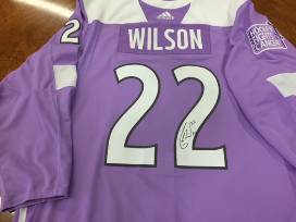 Colin Wilson lavender jersey worn during pre-game on November 2, 2017 in honor of Hockey Fights Cancer. Jersey will be autographed by Colin Wilson. Size 56. Sales tax will be added to your final bid and shipping charges may apply. If a bid is placed in the final 30 seconds of the auction, the close time will extend another 30 seconds until no bids have been placed in that timeframe.