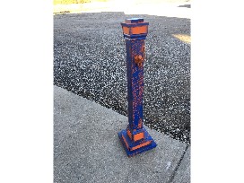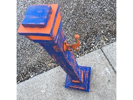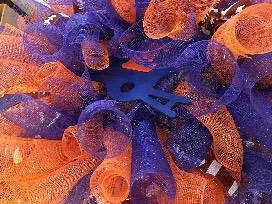 Includes a handmade, orange and blue mesh ribbon wreath with football helmet decal. Also includes a freestanding orange and blue decorative porch post made for interchangeable hanging signage.