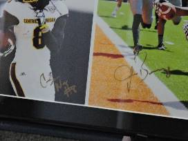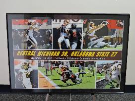 Never forget how the Chippewas stunned the nation with an incredible Hail Mary against Oklahoma State with this photo signed by Coach Bono, #8 Corey Willis, #10 Cooper Rush and #88 Jesse Kroll.