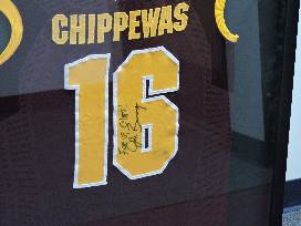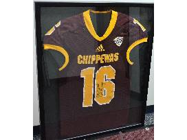 This authentic framed CMU maroon jersey is signed by CMU Football Head Coach, John Bonamego.
