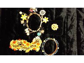 1This beautiful set of jewelry includes a multi coloured bracelet, jewelled earrings, a Betsey Johnson Daisy Bracelet, a Betsey Johnson Charm Bracelet, a yellow flower crystal ring, an onyx & precious stones necklace, a blue moonstone necklace, and sweater bird clips. Value $1,500.