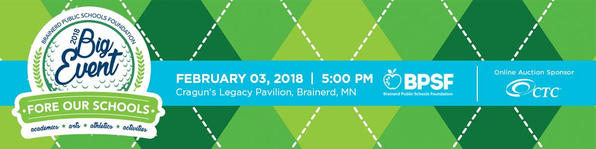 On behalf of the Brainerd Public School Foundation, we are very excited to announce The Big Event, a celebration of the Brainerd Public Schools Foundation that will be held on Saturday, February 3rd, 2018 at the Legacy Pavilion. This is a volunteer organized event to celebrate our public schools and raise funds for the Brainerd Public Schools Foundation (BPSF). This year's golf-themed fundraiser is a nearly SOLD-OUT EVENT, with 300+ attendees in our fifth year. The Big Event appeals to local residents as well as people from outside the area as the Brainerd alumni reach goes quite far.