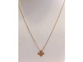 Beautiful cross with diamond detail set in 18K rose gold on simple, understated chain. 4 round GSI diamonds 0.01 TCW. Estimated value: $490