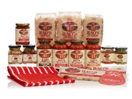 Rao's gift basket is filled with a variety of delicious sauces, pastas and vegetables!