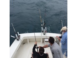 Let's go fishing. Take 4-6 family members or friends on a five hour Lake Michigan fishing excursion on a 47 ft. Viking Yacht Convertible Sportfish. All fishing equipment, private captain and non-alcoholic beverages included.