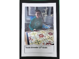This hand painted floor mat was created by HCP student artist, Tessie Schonder. This a a gorgeous, tiled styled pattern.