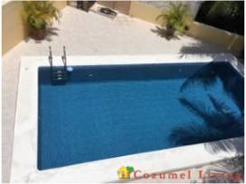Located in the exclusive Cozumel Country Club in north Cozumel across the street from the golf course in an oceanfront development. Spacious 3 bedroom, open concept living room, dining room, breakfast area, and large kitchen with pantry, laundry room downstairs off double car garage. Gated walkway one house to the ocean on a nice sandy beach.