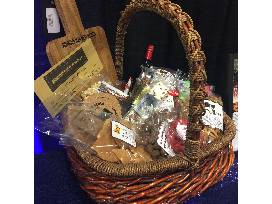 Gourmet basket with assorted accessories and specialty goodies