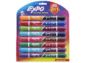 EXPO 2-in-1 Dry Erase Markers, Chisel Tip, Assorted Colors, 8-Count