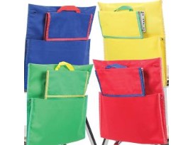 Chair Pockets from the Really Good Stuff. Color code groups, assign seats, keep materials organized and more with this helpful classroom organizing set. The eight sturdy chair pockets help students organize their materials and come in four different colors for easy grouping. Clear plastic tabs on each pocket hold a replaceable name tag. This set also includes eight brightly colored book pouches to store books, folders, and other supplies. Made of water-repellent nylon fabric, the sides and flaps are stitched with durable, nonrip seams. Each one includes a sturdy, stitched-on handle for easy carrying or hanging, hook-andloop closures that stay in place, and a clear pocket for name tags.