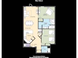 This 2-bedroom, 2-bathroom condo sleeps six (6) with a queen sofa sleeper, living room, full kitchen, washer/dryer, cable TV, and free Wi-Fi.