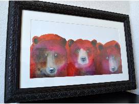 Watercolor artist Sarah Rogers sometimes describes her art as "tropical western wildlife'" because of her hot-colored Rocky Mountain area animals. Signed and numbered by the artist, this is a now sold-out print. Matted. Frame measures 29" x 20".