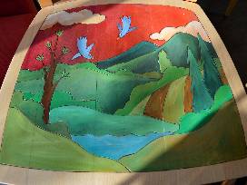 It's not just furniture, it's art. This bar-height table and chairs by Sticks is finely crafted from birch, poplar and driftwood. The pieces are further designed with hand drawn imagery, etched contouring and vibrantly blended paint. The table is 48 inches tall and 30 inches across and etched with the words "Live life to the fullest" and "Watch sunsets."