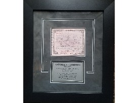 Here we have an original perscription for whiskey written by a New York doctor in 1932. It is framed with an informational plaque which explains the process of how alcohol was obtained during the prohibition years. Despite the fact that the included certificate states that this is a duplicate, it is considered an original as carbon copy was used; One copy stayed with the pharmacist and the other was sent to the US Treasury.