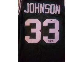Here we have a Michigan State style jersey signed by the one, and only, Earvin "Magic" Johnson Jr. Johnson is a former MVP and has been elected to the basketball hall of fame. Many have given him the esteemed title of being one of the greatest basketball players of all time.