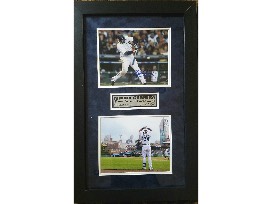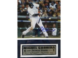 Here we have an autographed Miguel Cabrera display that features two photographs of the player in Comerica field, one of them autographed. Cabrera has won 4 American League Batting Championships, as well as a triple crown in 2012, making him go down in history as one of the greatest Tigers of all time.