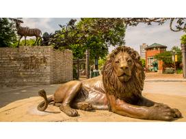 Package includes: Curator's Circle Membership, 150th Anniversary Magazine, Viewfinder, and Timeline, Custom coasters, 2 pairs of binoculars, T-Shirt, Hat, and Lion Plush.