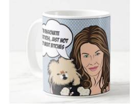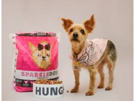 Package includes: 1 bag of Sparkle Dog dog food, Lisa Vanderpump themed coffee mug, Lisa Vanderpump themed card, and "Extra Dog Mom" Sweatshirt (size large) from The Daily Tay.