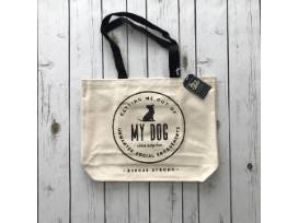 Package includes: "My dog: Getting me out of unwanted social engagements since adoption" tote. "All My Best Friends Are Dogs" luggage tag, bottle opener and koozie from Rescue Strong, Your Robot Dog Will Die book by Arin Greenwood, Introvert enamel pin, "Hate People" socks, and Dogly $50 gift certificate.