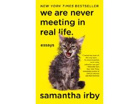 Package includes: Signed copy of "We Are Never Meeting in Real Life" by Samantha Irby, $25 gift certificate to Women and Children First bookstore, cat pins and patches by Everyday Olive, pizza and ice cream shaped catnip toys by FelineFun, and fish print cat food bowl by Whirprint.