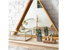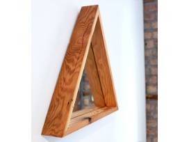 Package includes: Triangle Mirror. The natural wood and modern geometric shape of this triangle mirror blends seamlessly with any decor. Our mirrors are crafted by hand with reclaimed wood salvaged from the Chicago area. The knots, saw marks and nail holes add to the character of each mirror, making it a truly unique piece for your home.