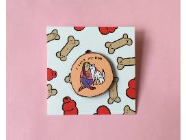 Package includes: "I Love My Dog" Print, pin, and "Find a Dog, Pet it" Mug by Molly Anne Bishop.