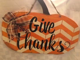 Dual sided Thanksgiving-Halloween pumpkin! Thanksgiving side says "Give Thanks" and Halloween size is an adorable jack-o-lantern.
