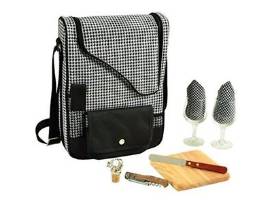 - A sleek and sophisticated houndstooth wine and cheese tote. Insulated to keep two bottles of wine or champagne at the perfect temperature, this tote is great for picnics, concerts, or the beach. It includes two glass wine glasses, napkins , corkscrew, bottle stopper, cheese knife, and hardwood cutting board.