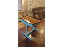 A vintage school desk is a perfect imperfectly refinished little project done by an amateur. Cute for a child to have in their room or for someone to add to their home decor.