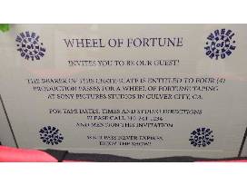This item includes an autographed picture of Vanna White & Pat Sajak. and cardboard cut-out of a number of the wheel also autographed by both Vann & Pat. A t-shirt, bag, pen & key chain sent to us from the show production themselves. AND a pass for 4 guests to view a taping of the show that never expires!