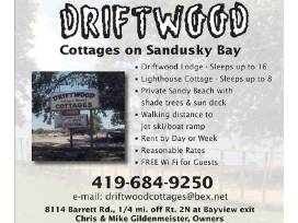 Driftwood Cottages has offered Friends of Firelands a 1 or 2 night stay at one of their 2 cabins right on the Sandusky Bay.