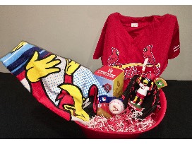 Become the ultimate Cardinals fan with two (2) tickets to the Cardinals vs. Cincinnati Reds game Sunday, April 22nd at 1:15pm. Tickets are located in Right Field Box-Section 134, Row 26, Seats 13 & 14. This basket also includes a Fred Bird beach towel, Matt Carpenter jersey (youth M), Fred Bird bobble head and a Rawlings Cardinals youth baseball glove to catch all of the fly balls!