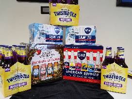 12 pack of assorted Angry Orchard Hard Ciders, 12 pack of bottle of assorted Sam Adams Summer Beers, Two (2) Six packs of Sam Adams '76, Three (3) 6 packs of Huckleberry Twisted Tea