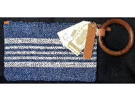 Blue and White Striped Clutch with Removable Wooden Bangle Bracelet