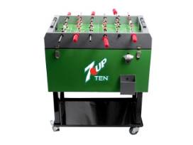 7 Up Large cooler with foosball tablelid. Includes bottle opener, bottle cap catcher, bottom cart, and 4 rolling caster wheels. Enjoy the sun by sitting under a 7 Up solar powered (lights) umbrella with stand. Items will need to be picked up or we can delivery! Gift certificate with contact information will be given to the winner.
