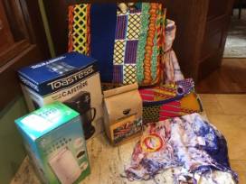 Enjoy ROBOT HEART fair trade, dark roast coffee grown by people who care about quality, community, and environment. Roasted by Concious Cup Roasters. Continue to enjoy their coffee using your gift certificate at their Wauconda or Bartlett locations. Generously donated by Conscious Cup Roasters. Make your coffee using a grinder and coffee maker donated by the Welch family. Enjoy a messenger bag, clutch, scarf, and bracelets fairly traded direct from artisans of Ghana. Generously donated by Terri Neil.